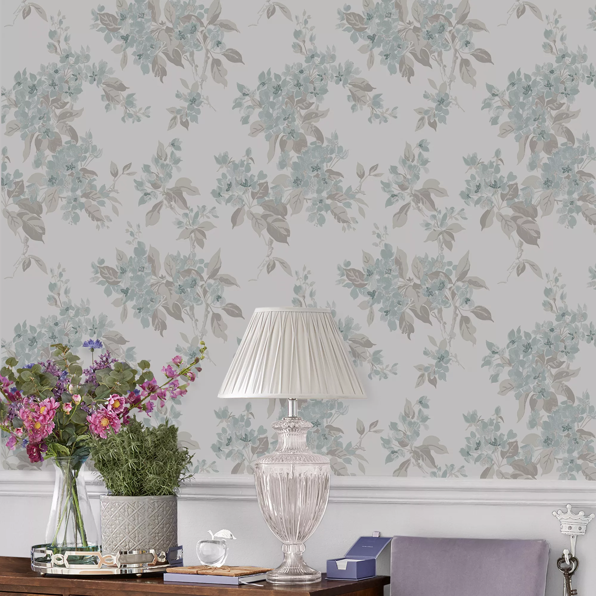 In beautiful fresh duck egg tones the ever popular apple blossom print is a must, adding a soft splash of colour and country charm to your walls.
