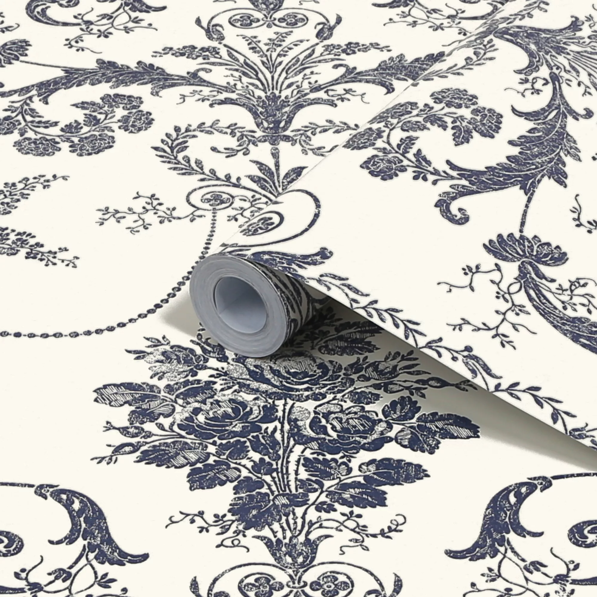 Our elegant Josette print has been recoloured for the season in a striking off white matt background with midnight blue design details.